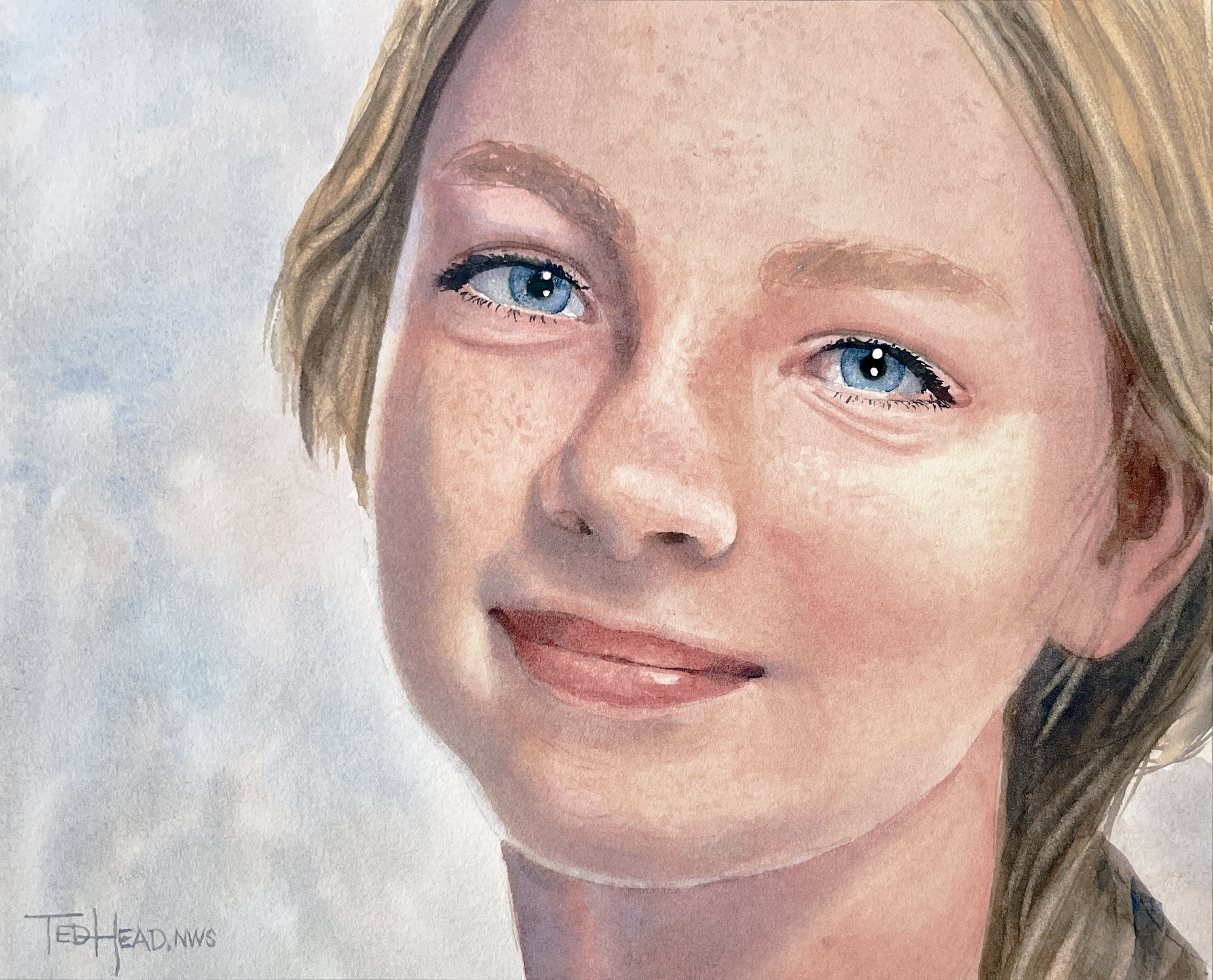 We'll paint this beautiful blue-eyed girl , focusing on creating smooth skin tones, stunning eyes, and strands of blond hair.